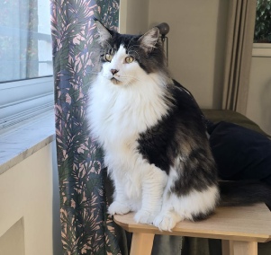 « Bonsoir! Asgard est joueur, coquin, mignon câlin-pot de colle et très gourmand! On le trouve dans les tiroirs, le lave-vaisselle, l’évier… bref la belle vie! On est tombées sous le charme »