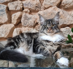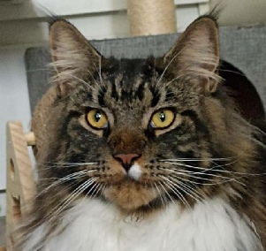 « Ymir, un superbe et adorable chaton qui nous fait découvrir avec bonheur le Main Coon. Sociable, toujours présent et très câlin, c est un amour!