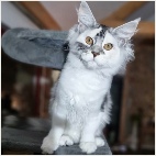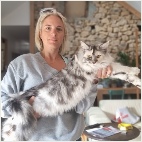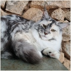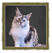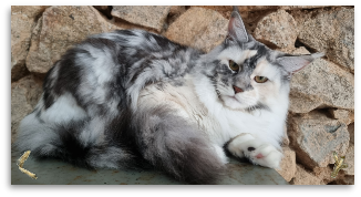 Black Silver Tabby et blanc. Un mâle très long de corps avec une ossature puissante et dotée d’une belle musculature. Son poids tourne autour des 11kg à presque 2 ans. Il possède un joli profil et de grandes oreilles. Merci Marcel pour ta confiance.
